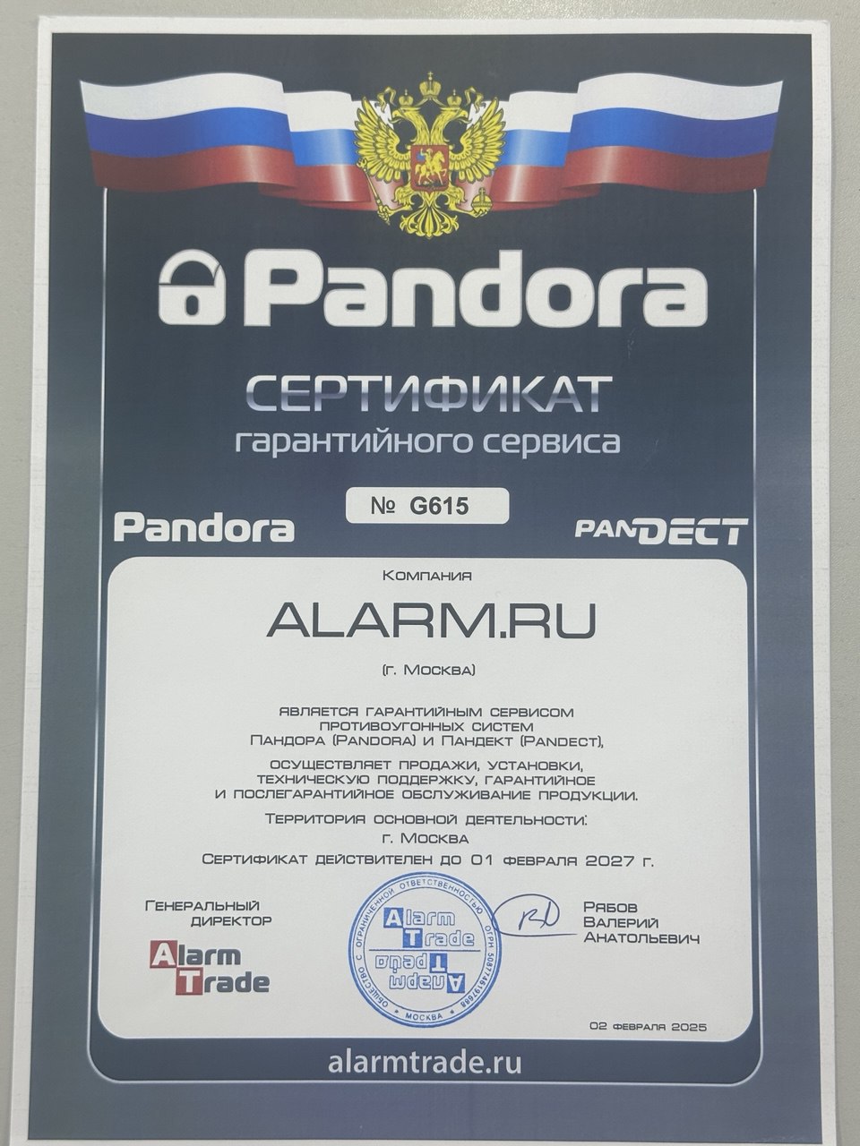 Все представленное на нашем сайте оборудование мы продаем в розницу и оптом, отправляем по России и за рубеж, а также устанавливаем в сети собственных авторизованных технических центров в Краснодаре, Санкт-Петербурге и других городах России. Мы даем гарантию на свои работы 3 года, а также предоставляем все необходимые сертификаты, подтверждающие право работать с оборудованием Pandora и Pandect — никаких проблем с заводской гарантией на автомобиль при обращении к нам у вас не возникнет.